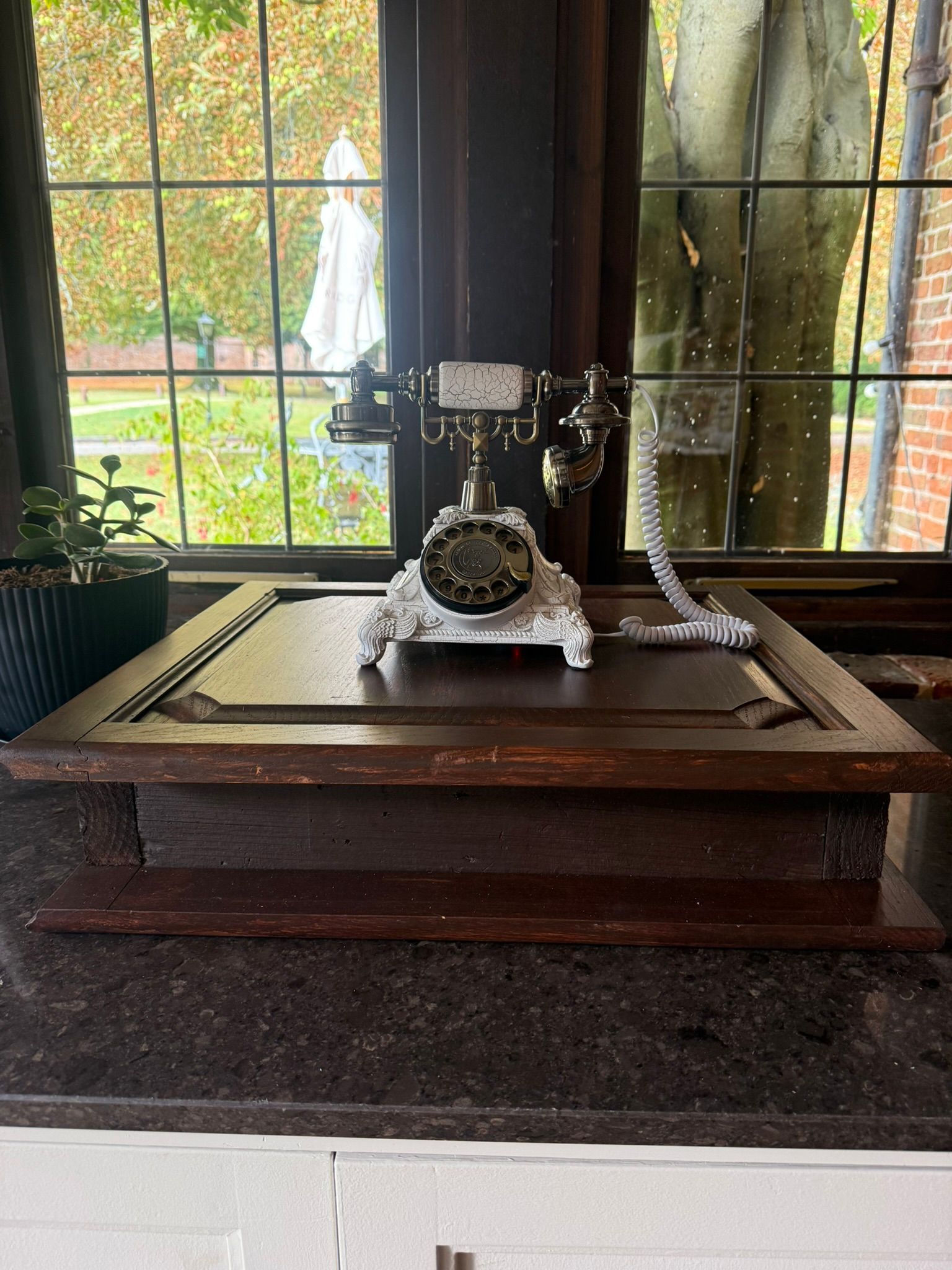 Our audio guestbook comes on a simple wooden box with all of the electric components stored away nicely. The box can be placed on a table of your choosing.