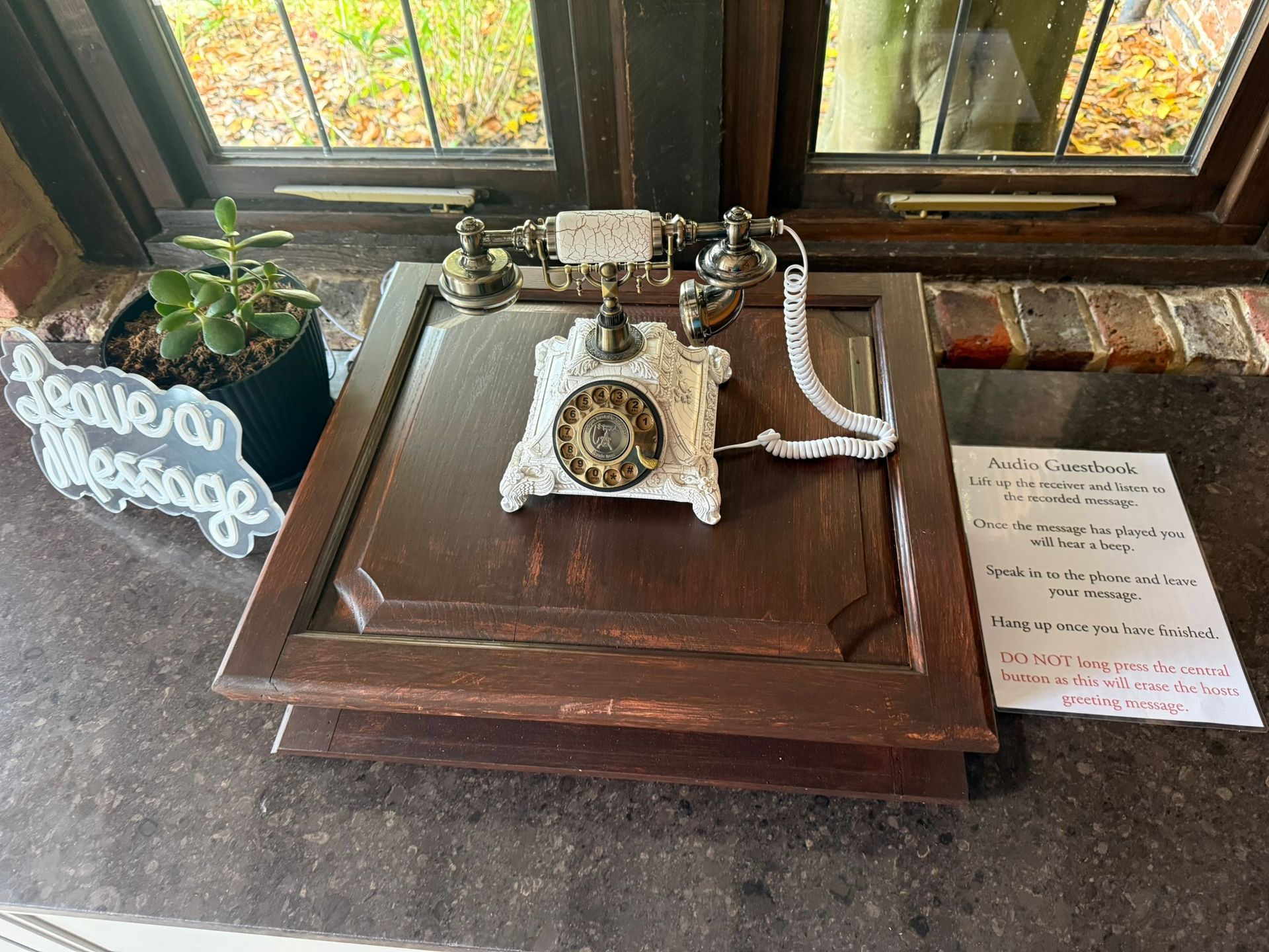 With our audio guestbook you can leave a message for your wedding guests. They then leave their message in the way you would on an answering machine.
