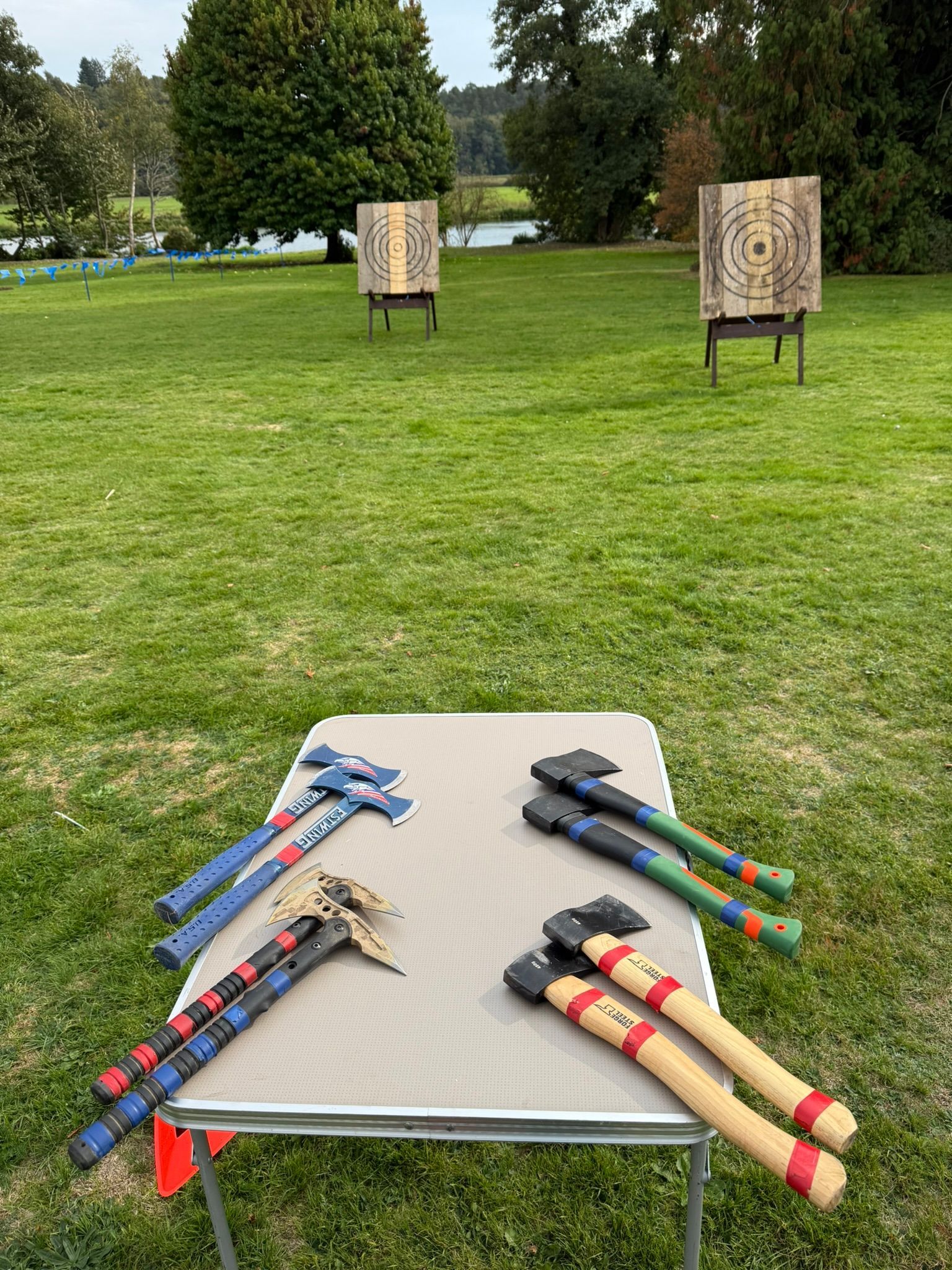 We use properly weighted axes for throwing on our standard targets. Then we have larger axes where you can add some power on the bigger distance targets.