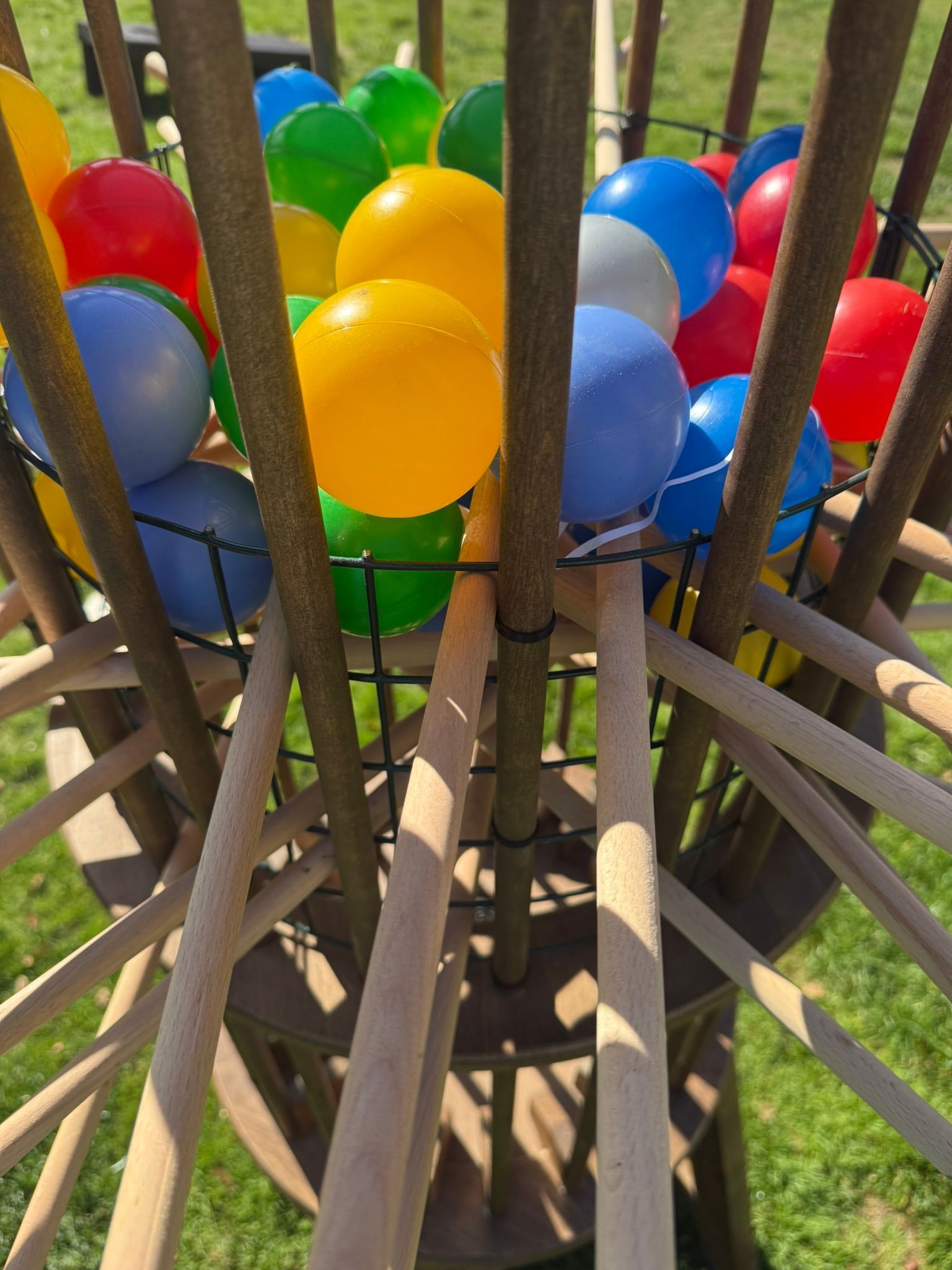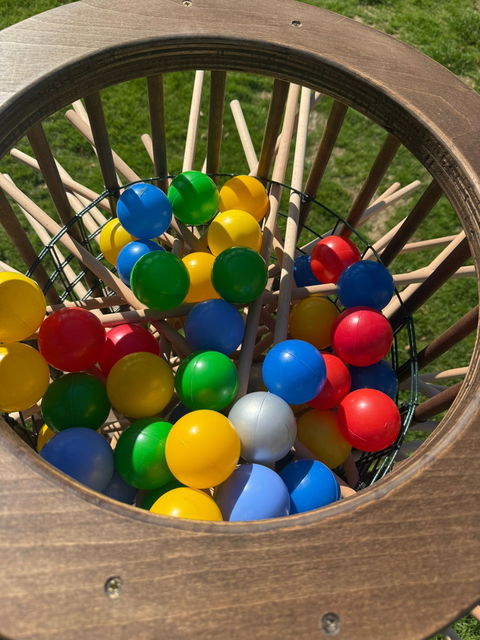 KerPlunk is a thrilling game where players take turns removing wooden sticks from the game filled with coloured balls. The goal is to avoid letting the balls fall as you pull out the sticks.